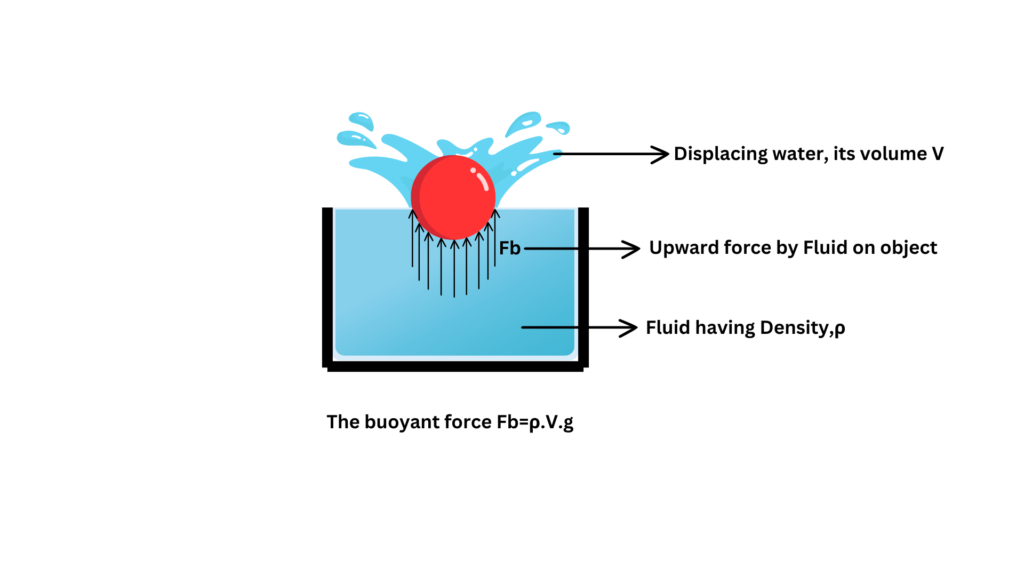 Buoyant force is the upward force exerted by a fluid on an object placed in it. This force is equal to the weight of the fluid displaced by the object. According to Archimedes’ principle, any object that is fully or partially immersed in a fluid, experiences a buoyant force equal to the weight of the fluid displaced by the object.